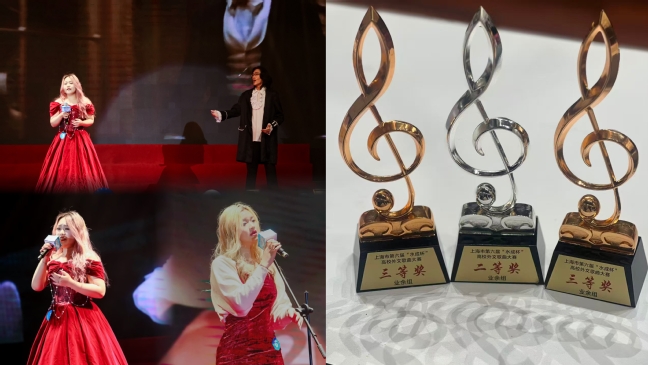 比赛中,由朱韵、张旖旎、王亭霈三位同学组成的代表队伍,以真挚的情感与丰富的声线演绎了多首外文经典作品,展现出对外语歌曲的独到理解与艺术表现力,彰显了上电学子昂扬向上的青春风采。
