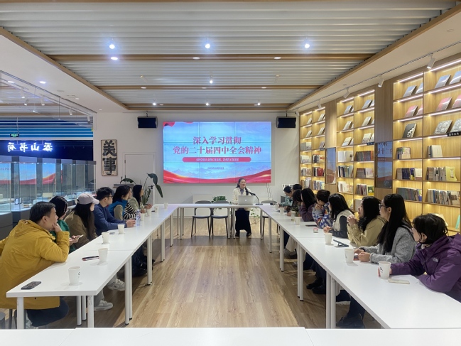 11月21日上午,文科学部人文教工党支部与艺术教工党支部在临港器山书局联合开展主题党日活动,并举办“文心艺德”思享汇教师政治理论学习。两个党支部全体教师参与学习,文科学部党委书记刘洁荣、副主任余嘉列席指导。