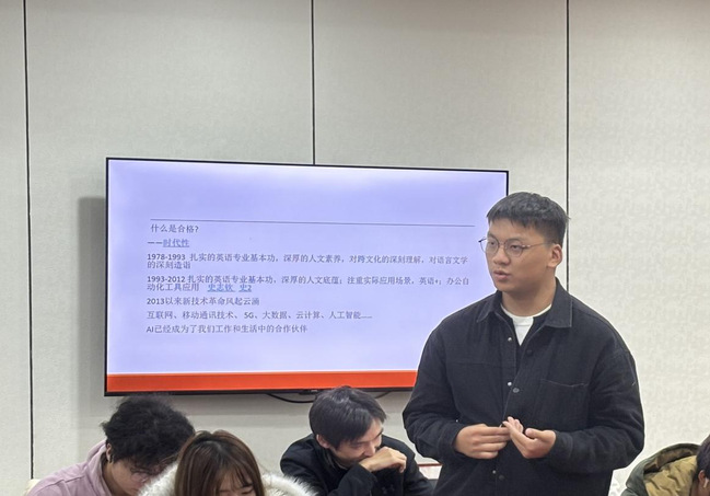 交流环节,师生就“如何平衡语言精进与专业知识的积累”“在人工智能快速发展的背景下,外语人才如何保持核心竞争力”等议题展开热烈讨论。魏教授以校友在国内外的求学、职业经历鼓励同学们开拓国际视野,将个人发展融入国家战略,在国际交流中锻造全球胜任力;以网红博主突破语言障碍和文化隔阂中独自畅游冰岛的视频,强调外语人才必须具备的适应力与韧性。