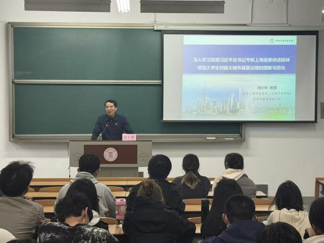 11月7日,市委党校贺小林教授应邀作《学习习近平总书记上海重要讲话精神,增强大学生对超大城市基层治理的理解与担当》专题报告,他系统解读上海作为改革开放排头兵的战略定位,从自贸区探索到超大城市治理,阐释城市发展与国家战略的深度联动。他呼吁青年深入基层实践,在服务上海“五个中心”建设中找准个人定位、回应时代需求。
