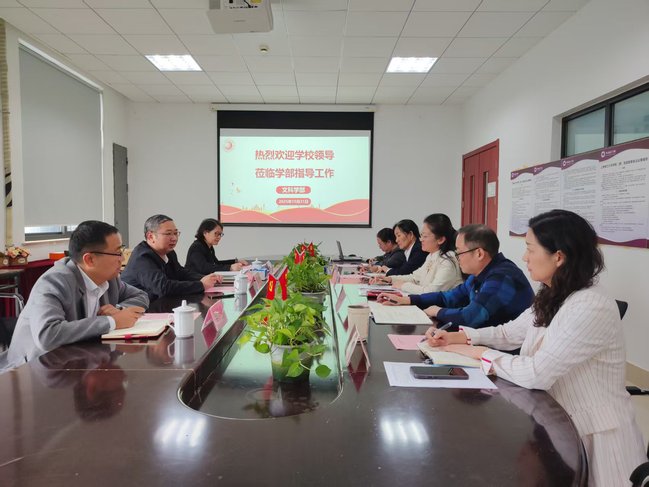 10月31日下午,校党委书记宋来、校党委副书记仰颐、校党委办公室副主任马国祥一行走访调研文科学部,学部党政班子、艺术教研室主任等参会。