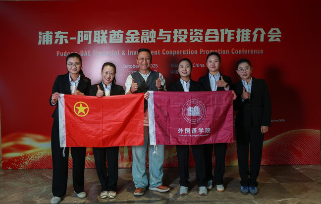 10月20日,浦东—阿联酋金融与投资合作推介会在上海举行,来自中阿两国的政府代表、金融机构及企业嘉宾齐聚一堂,共话“一带一路”框架下的金融合作新机遇。我校文科学部MTI翻译硕士组成的志愿者团队全程参与,以精准的语言服务为跨国合作搭建沟通桥梁,展现了新时代外语学子“专业赋能国家战略”的实践风采。
