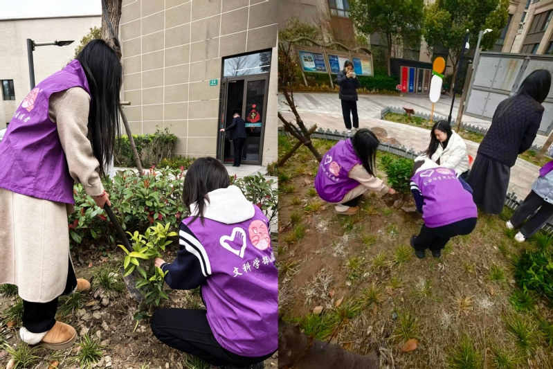 植此青绿,共筑家园。在第48个植树节来临之际,文科学部联合观泓雅苑社区于3月12日开展“植树绿化”活动。志愿者与社区工作人员分工协作,挥锹铲土、扶苗填坑、浇水压实,为社区增添盎然绿意。学生们通过实际劳作也增强了植绿、爱绿、护绿意识。